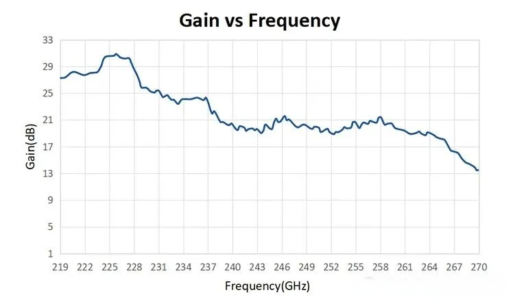 The 219–270?GHz power amplifier is characterized by its high operating frequency and broad bandwidth, making it a capable solution for advanced terahertz applications.