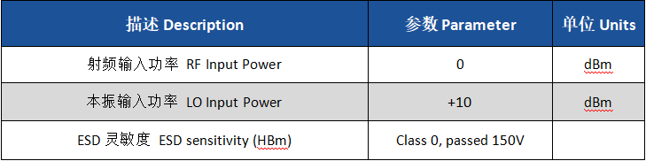 - 驅動功率要求低:本振驅動功率典型值僅為8dBm,易于系統集成