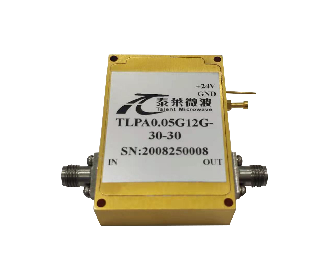 TLPA0.1G22G-35-28 是一款工作頻率覆蓋0.1-22GHz功率放大器模塊,增益35dB,飽和輸出功率28dBm,兩端SMA母頭。 任何型號都可以按照客戶要求優化指標,定制尺寸。泰萊微波通過了ISO9001和GJB-9001C 國軍標認證。